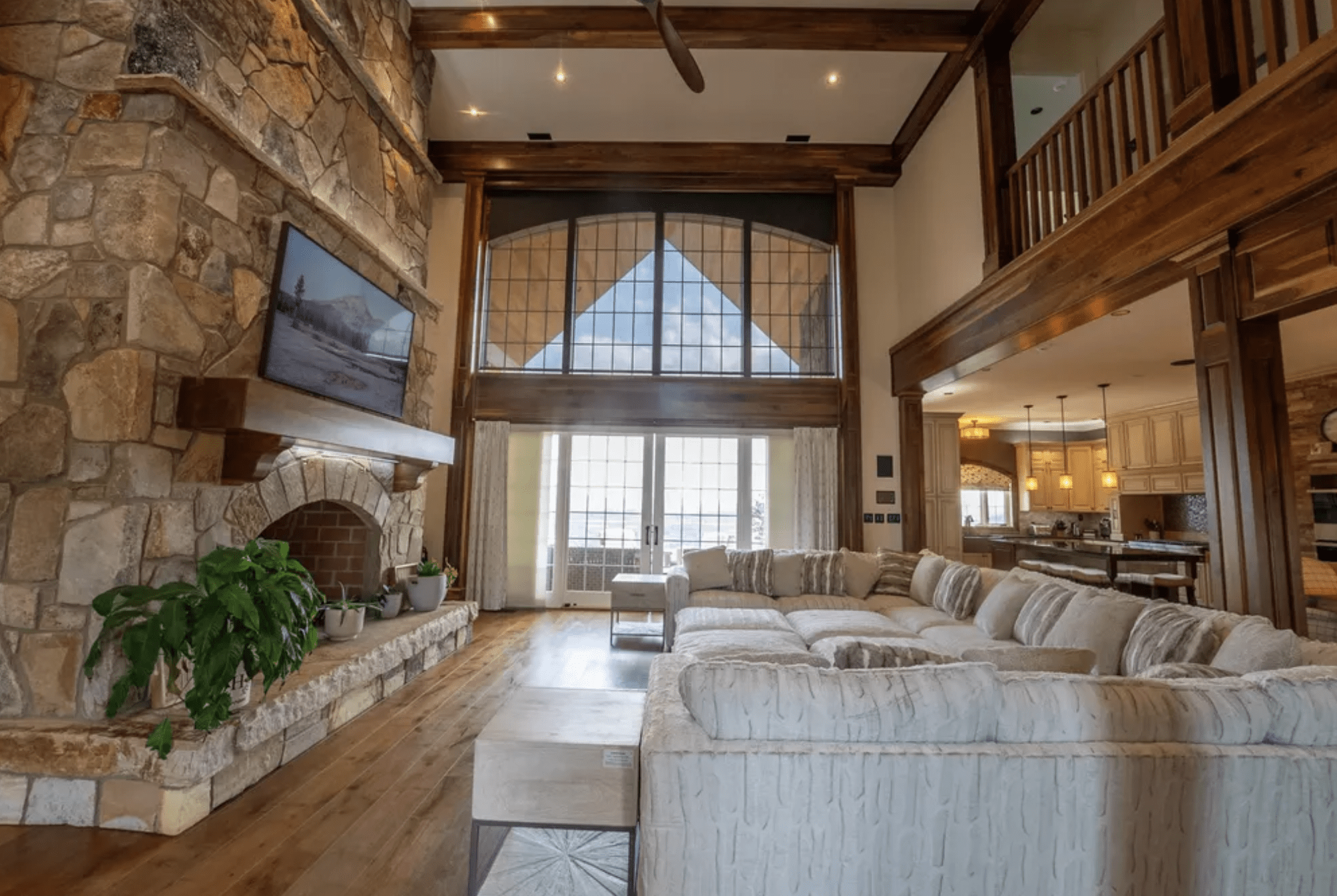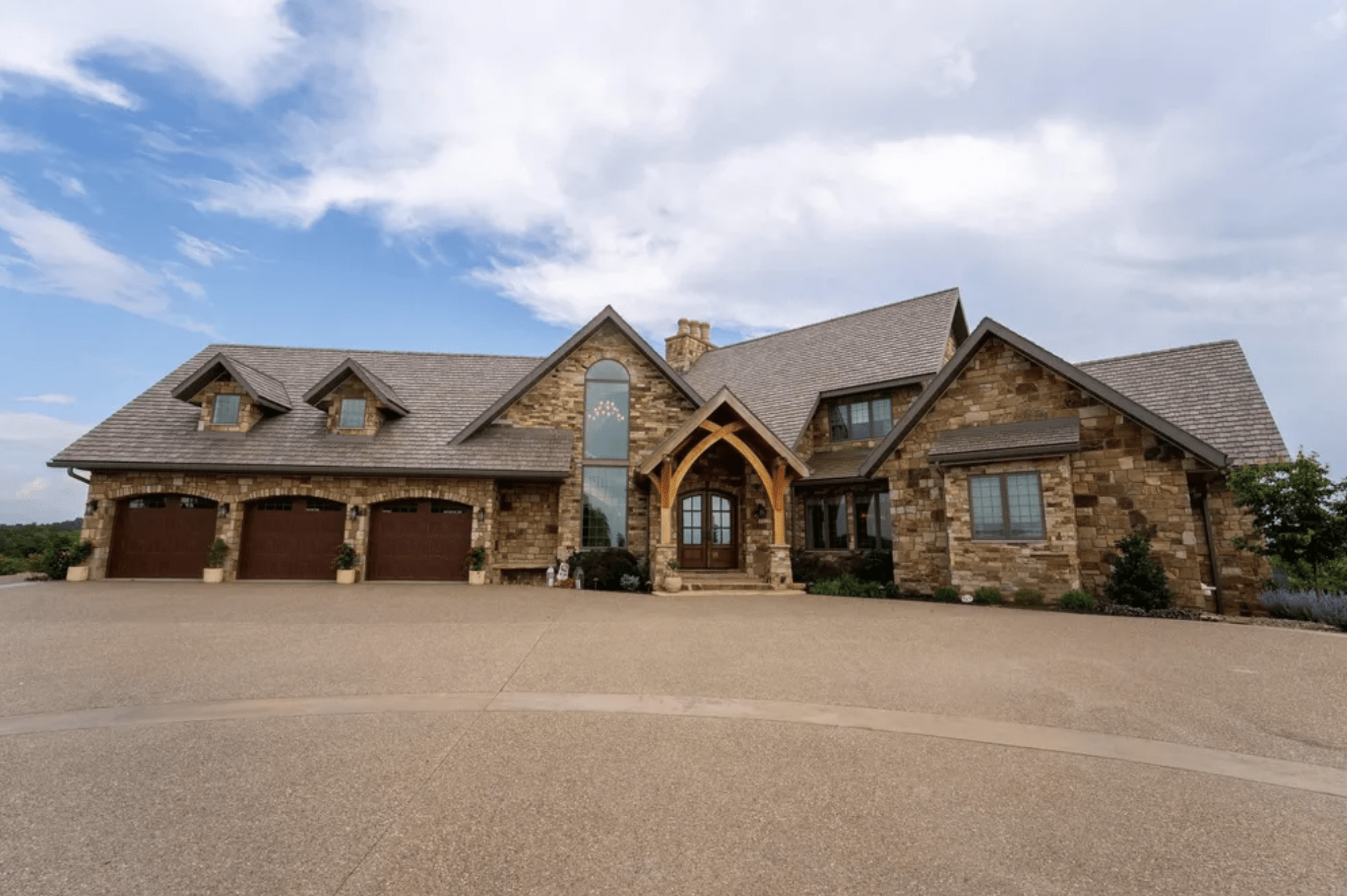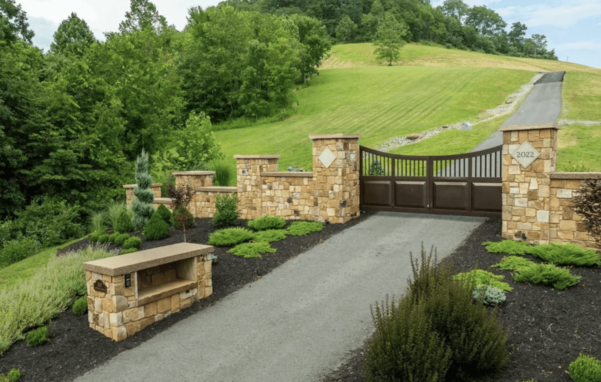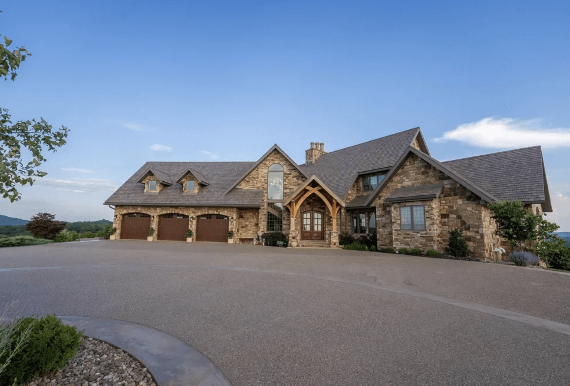 This 150+ acre estate is located at 300 Mountain Retreat Drive in Horner, West Virginia. The stone home features over 10,000 square feet of living space with 7 bedrooms, 7 full and 2 half bathrooms, living & dining rooms, great room, kitchen, lower level family room with wet bar, 3-car garage and more. There is also a 40×80 workshop.