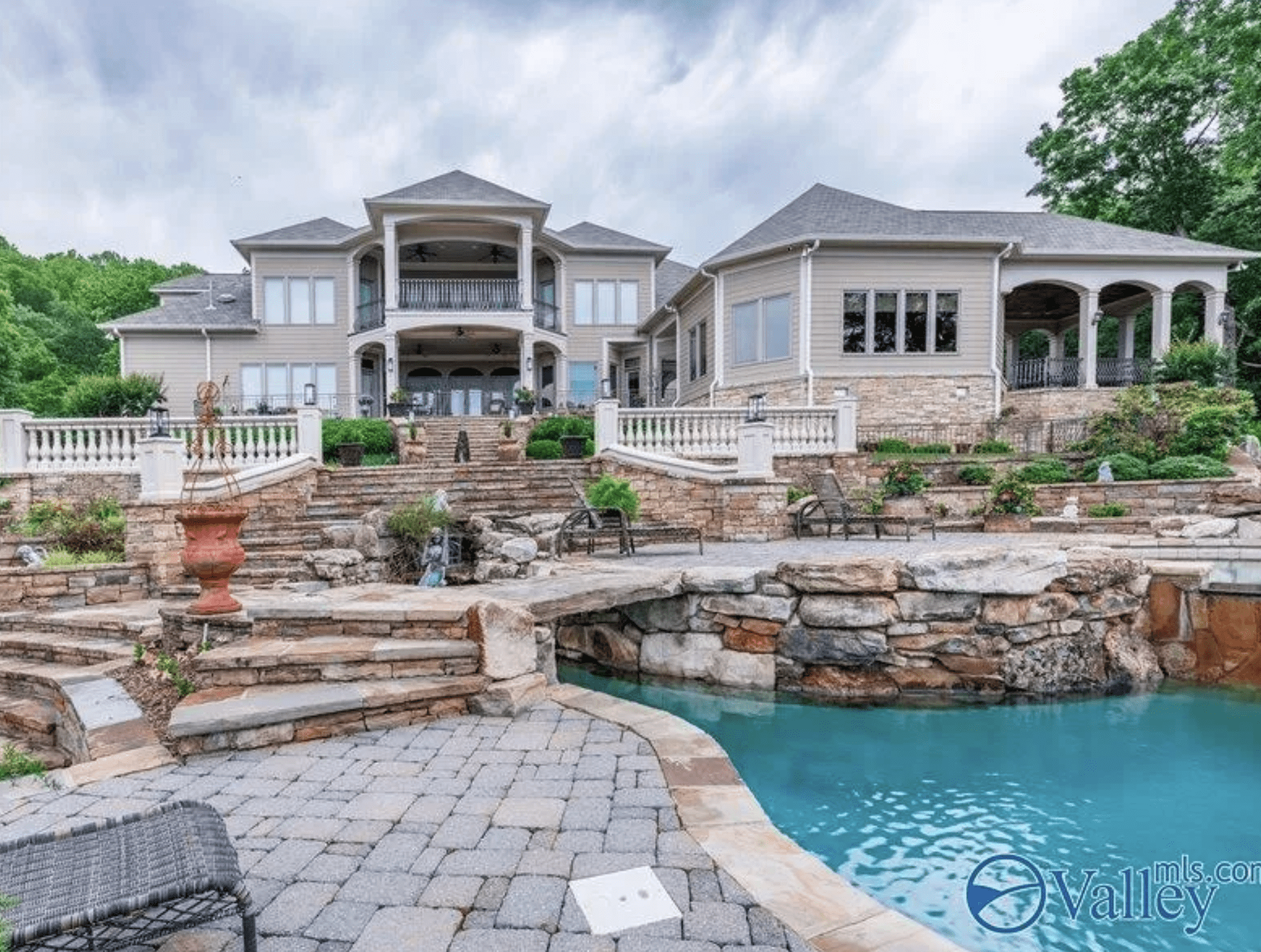 This 6+ acre estate is located at 1271 Becket Drive SE in Huntsville, Alabama. It features a main house, pool house and detached 3-car garage.
