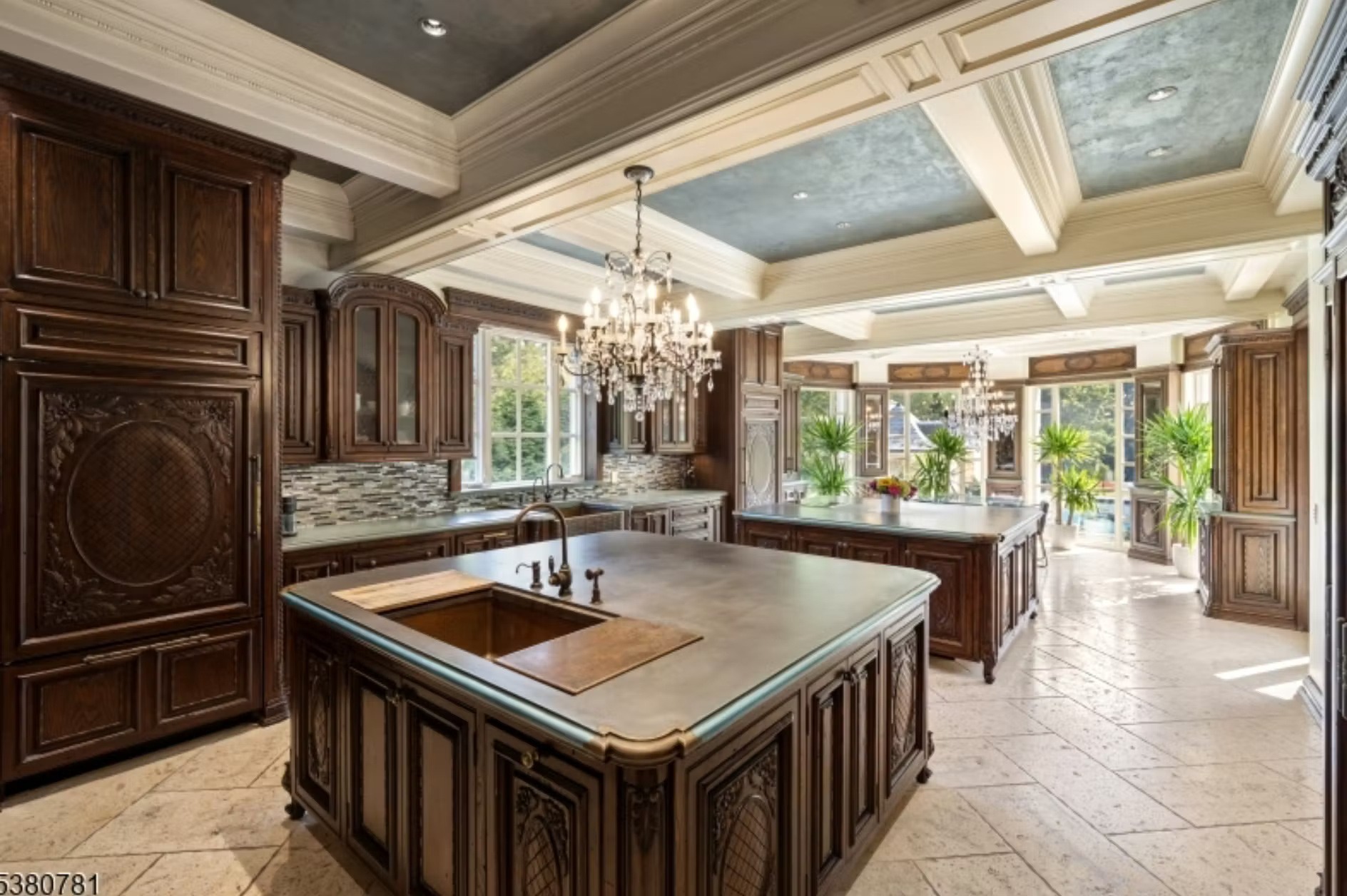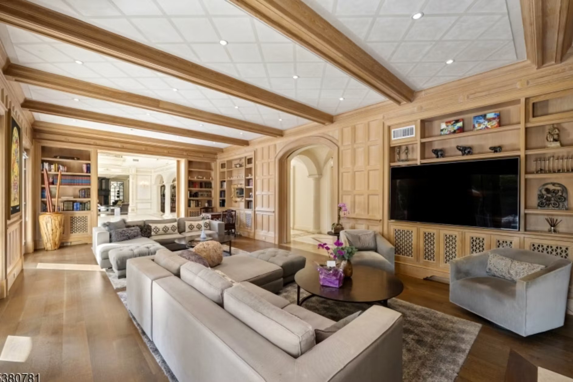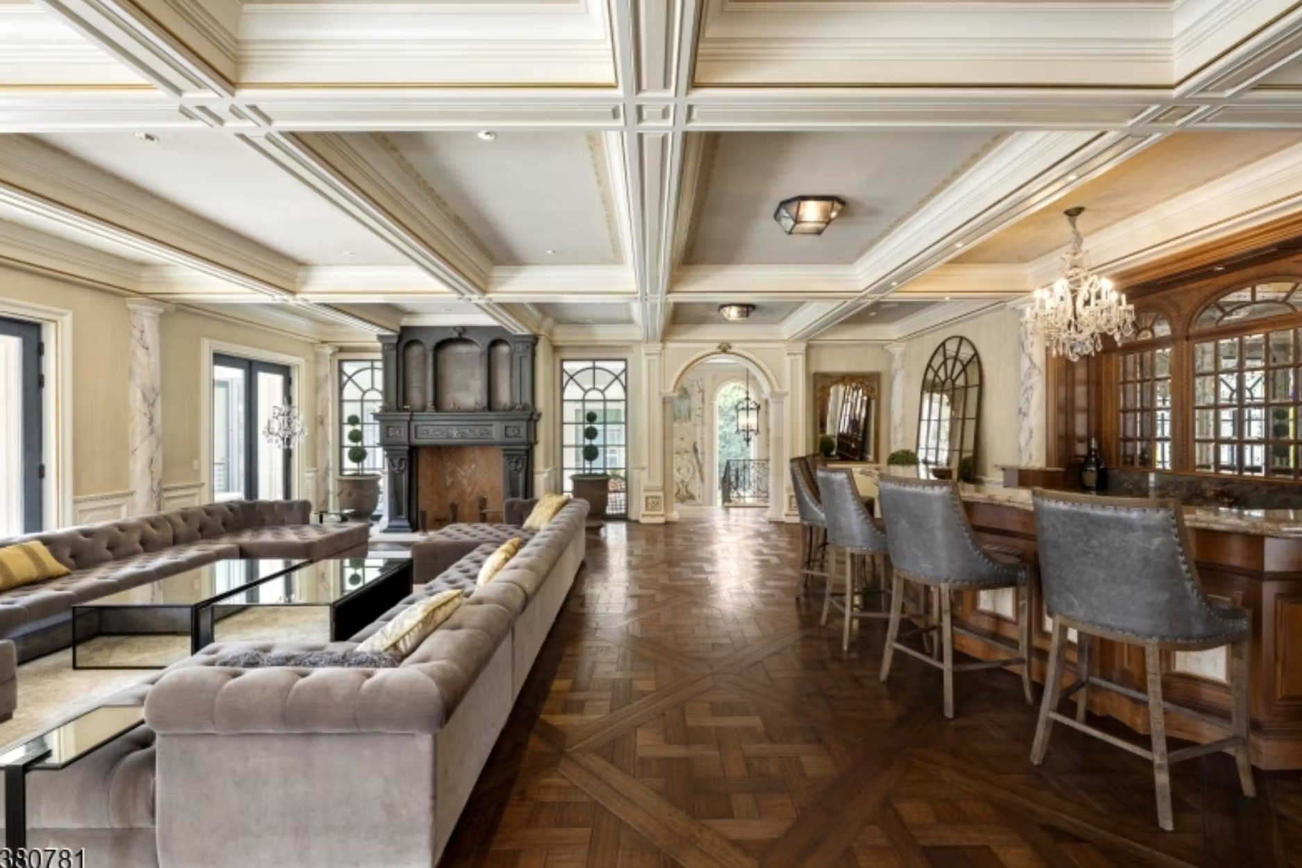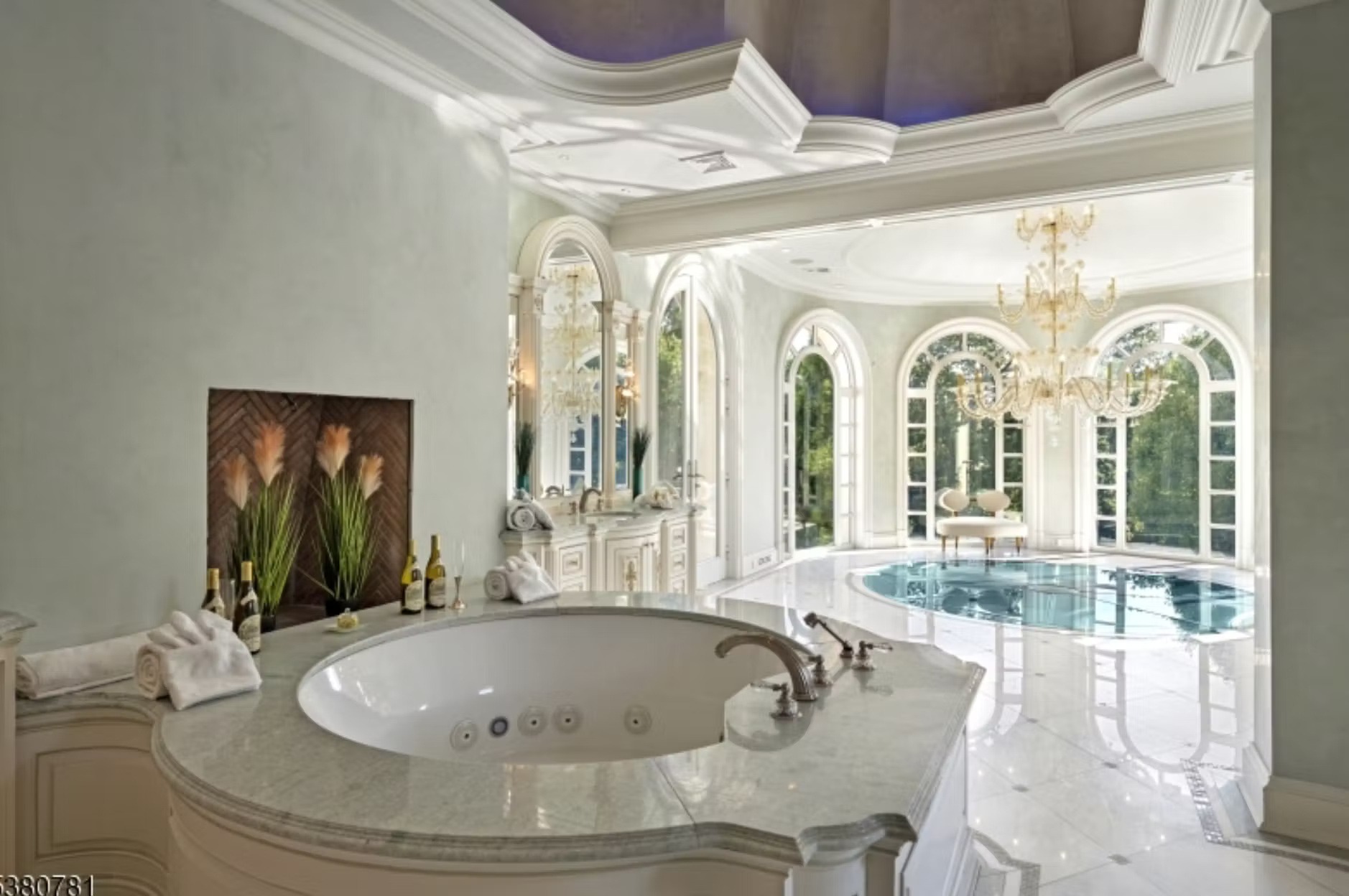 It is owned by Avraham Tahari, who is the co-founder of New York-based fashion brand Elie Tahari (along with his brother Elie). It features 21,000 square feet of living space with 8 bedrooms, 10 bathrooms, grand double staircase, elevator, multiple living rooms, formal dining room, kitchen with double islands, office, indoor swimming pool with spa, finished lower level, 3-car garage and more.