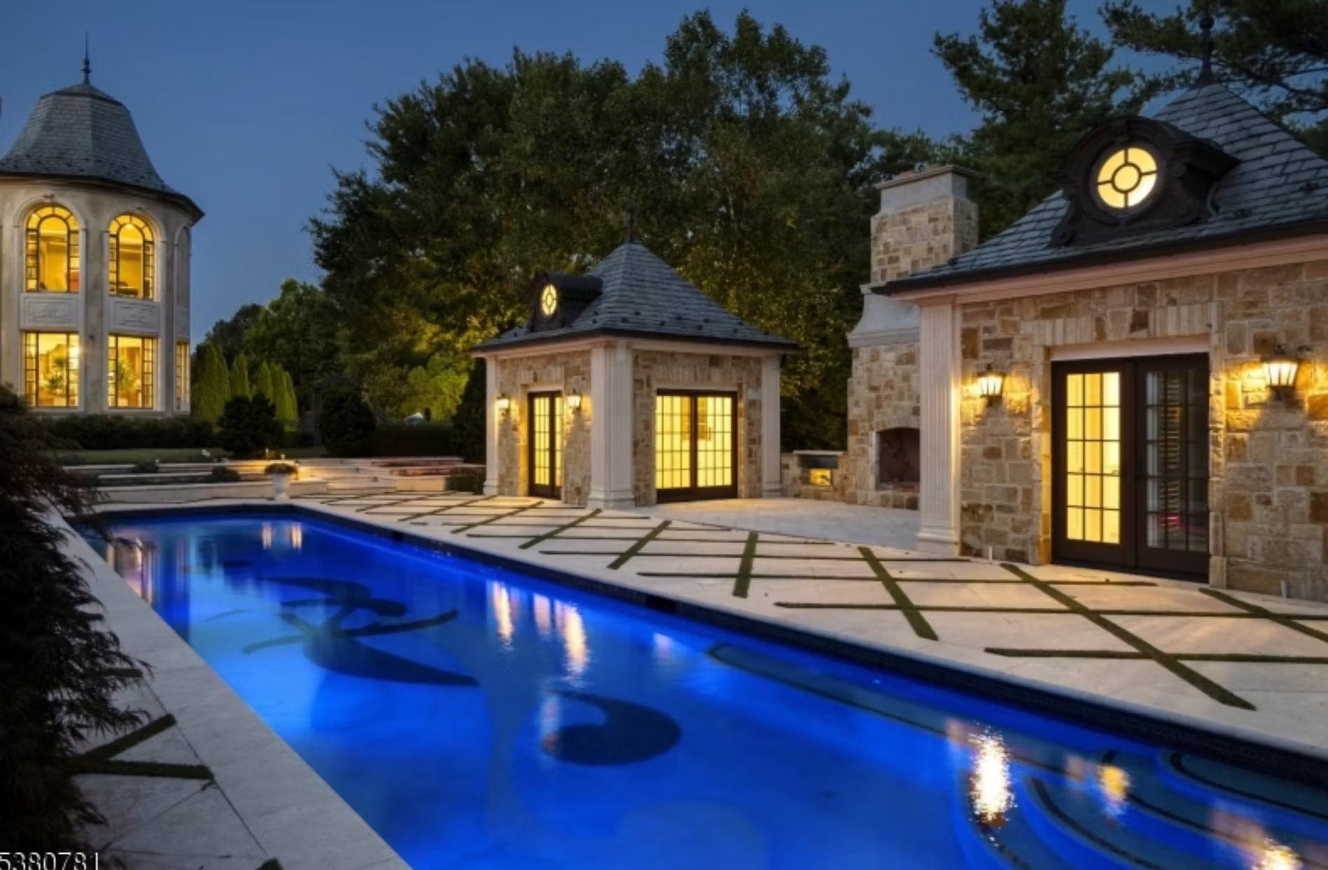 This incredible French-inspired stone home is located at 31 Rio Vista Drive in Alpine, New Jersey and is situated on 2 acres of land.