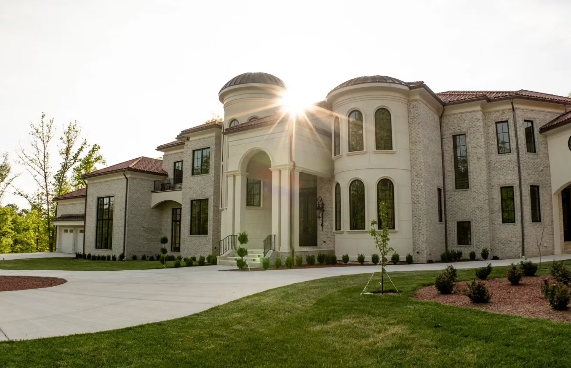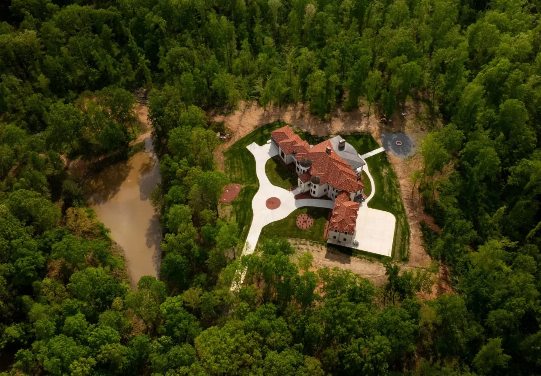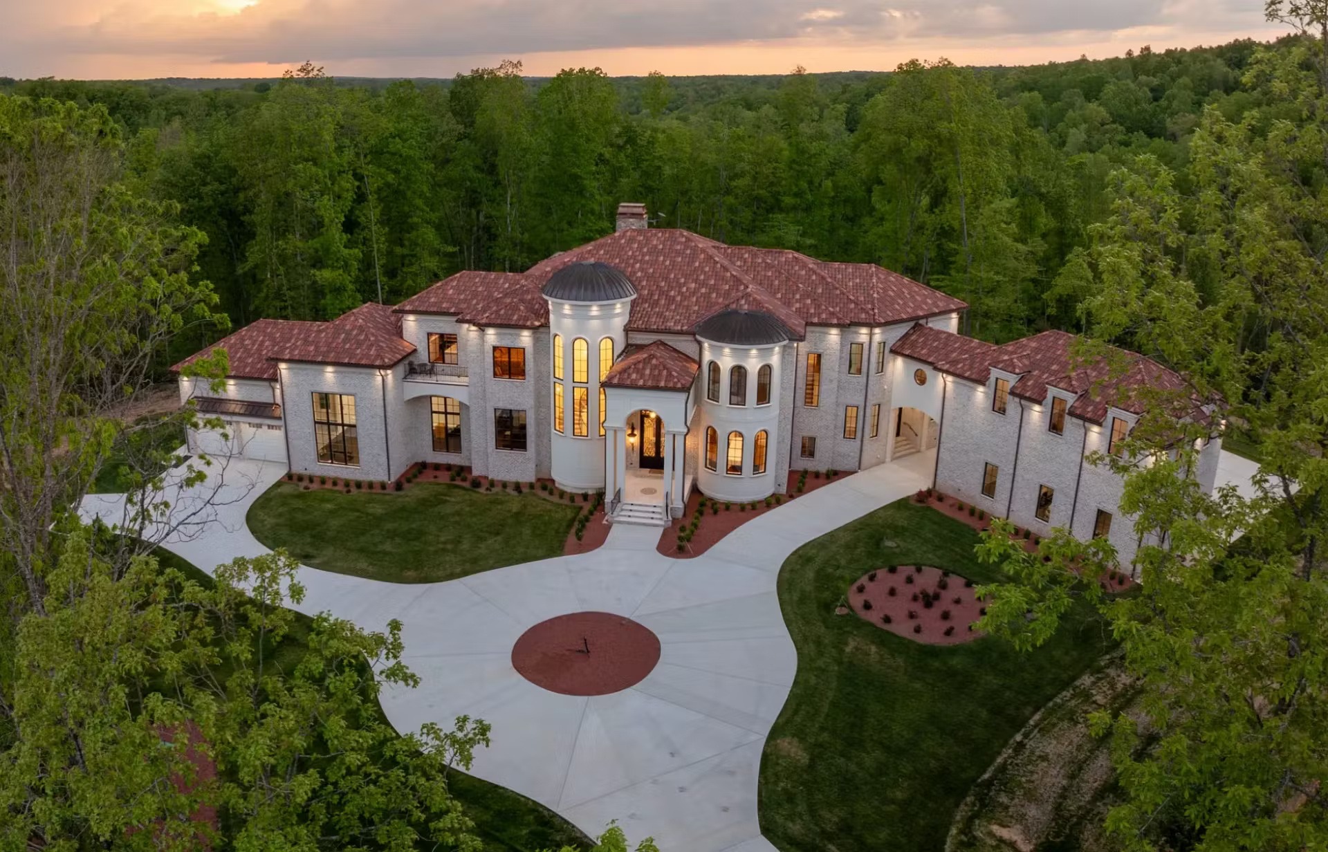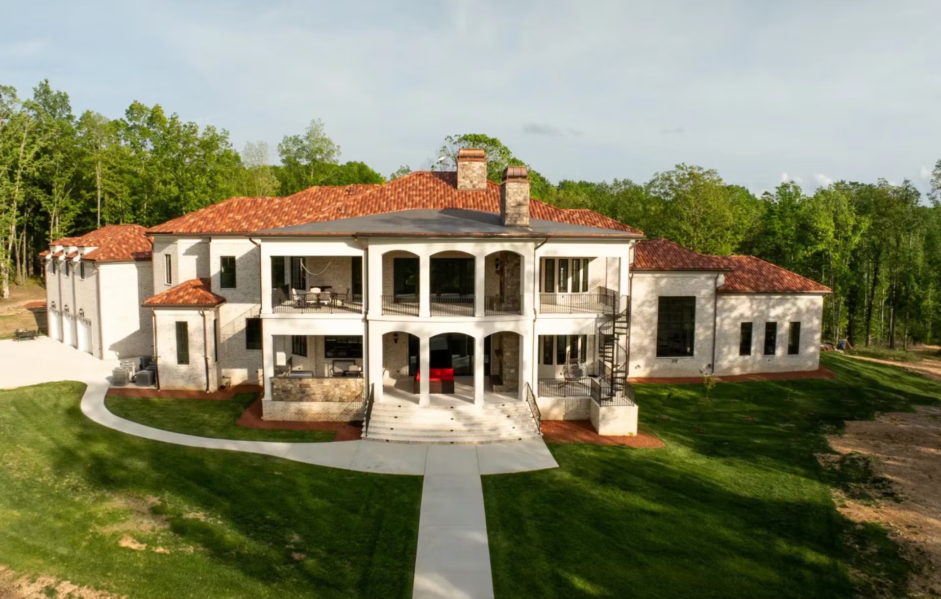 This newly built Mediterranean style home is located at 7948 Daugherty Capley Road in Primm Springs, Tennessee and is situated on 35 acres of land.
