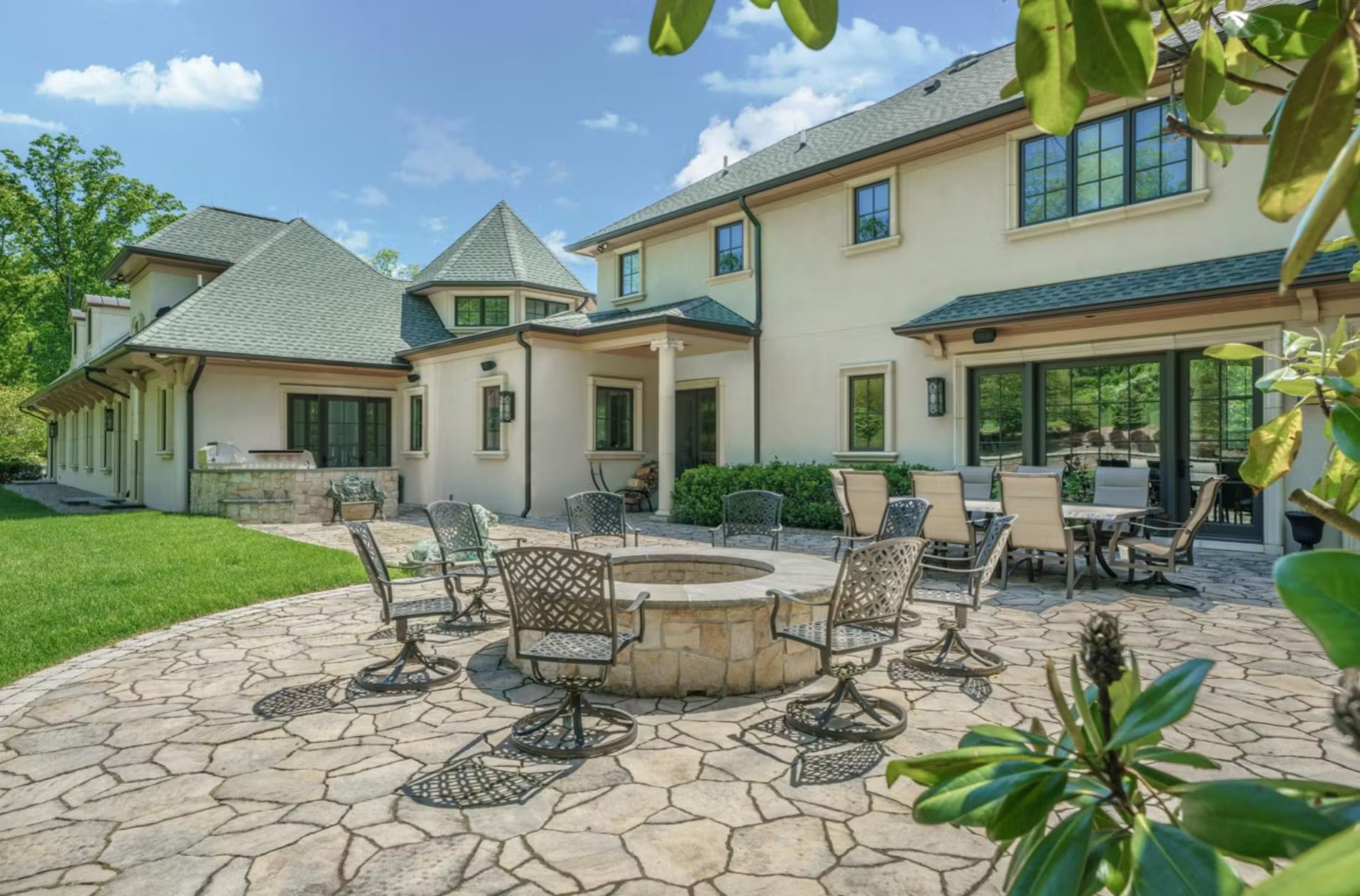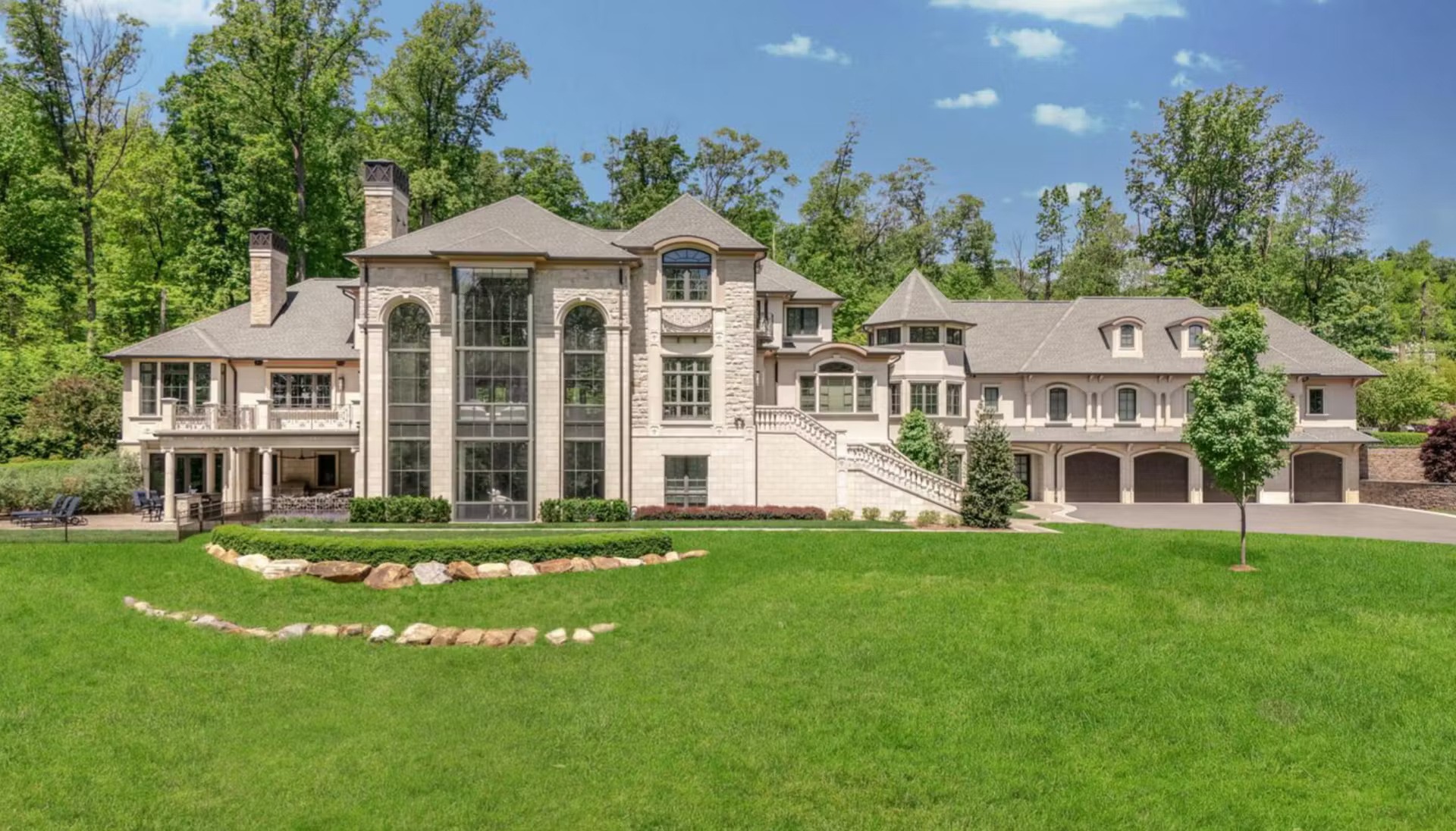 It features over 18,000 square feet of living space with 5 bedrooms, 6 full and 3 half bathrooms, great room, formal dining room, kitchen, breakfast room, office, wet bar, movie theater, gym, indoor pool with spa, vault, indoor shooting range, 4-car garage and more.