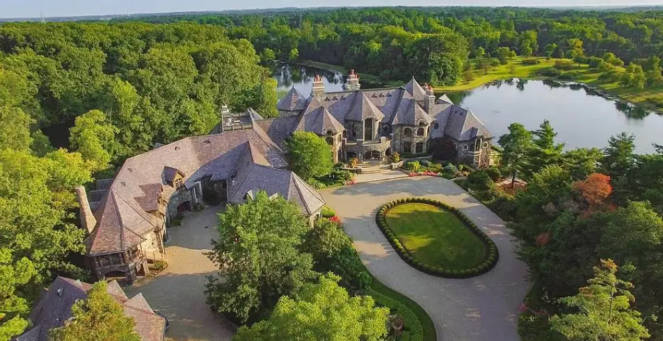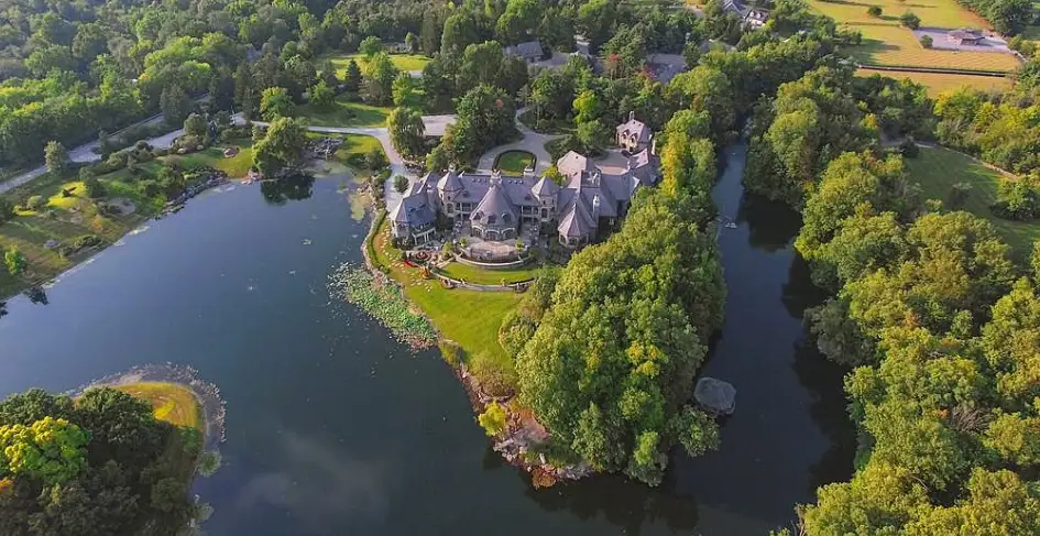 This 40-acre estate is located at 5501 W Hamilton Road S in Fort Wayne, Indiana. It was built in 1997 by successful franchise entrepreneur Dick Freeland who owned a whopping 44 Pizza Huts. It was last listed back in 2019 for $30 million.